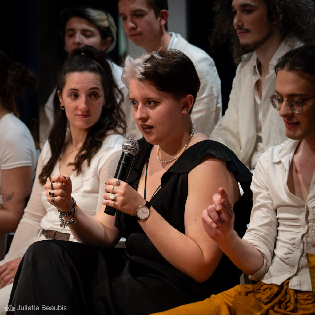 « Youhou ! Lucie est l’une des personnes que j’aime le plus dans ce bas monde. Quand elle m’a parlé de son projet de théâtre, j’ai tout de suite voulu en faire partie. J’en avais déjà fait auparavant, mais j’apprécie d’autant plus le faire pour elle. J’aime soutenir sa créativité et évoluer à travers les univers qu’elle imagine. Pleine de vie et curieuse, j’adore particulièrement les rôles un peu barjos qui me permettent de m’exprimer librement sur scène. Alors sachez que vous me verrez très souvent dans ses projets, car je serai candidate à chacun d’eux. »