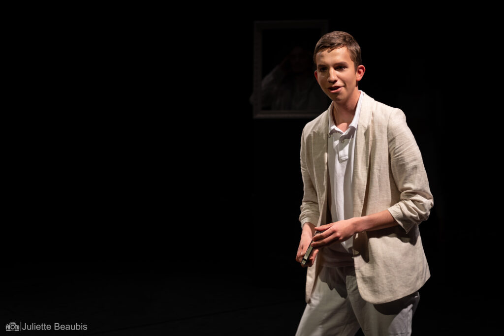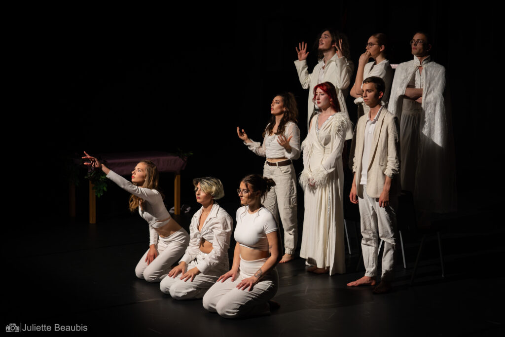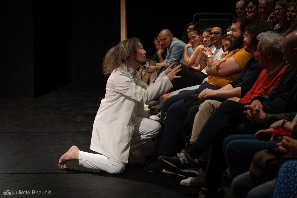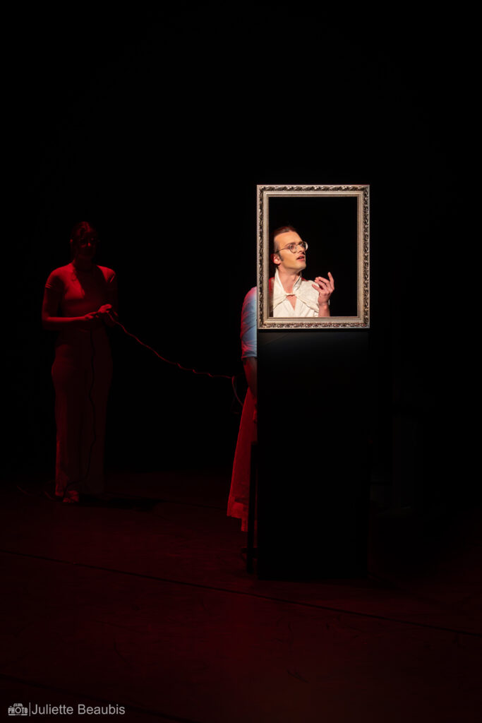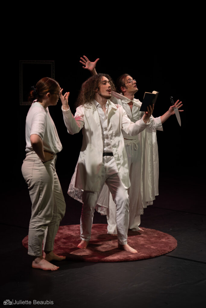 La musique de style électro montre ce côté répétitif de la philosophie à se poser les mêmes questions en boucle. Elle symbolise la folie que la pièce veut inspirer à la fin.