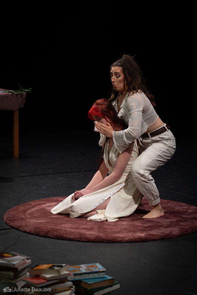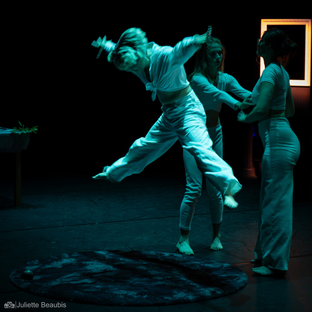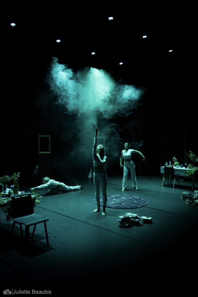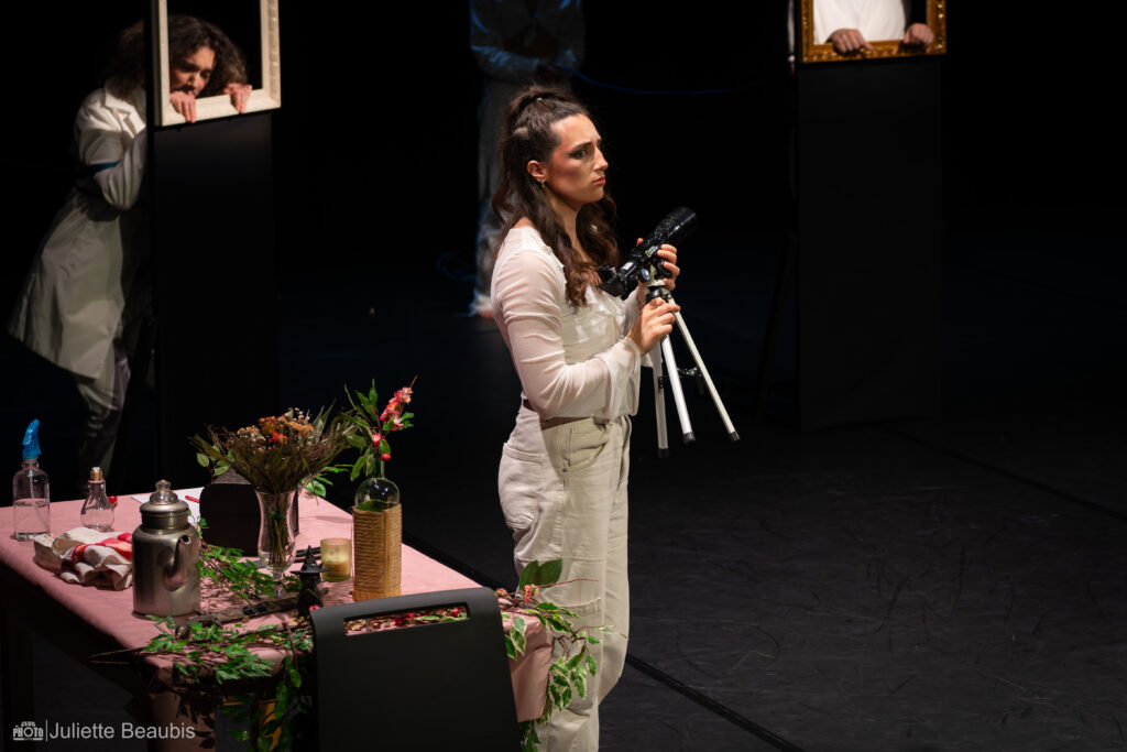La musique de style électro montre ce côté répétitif de la philosophie à se poser les mêmes questions en boucle. Elle symbolise la folie que la pièce veut inspirer à la fin.